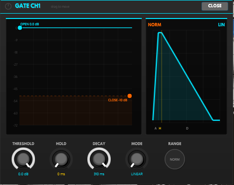 Decay Time: 5–320ms—how quickly the gate closes