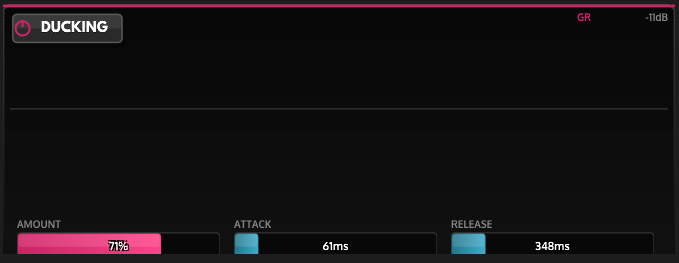 For natural-sounding ducking, use medium attack and release with subtle amount